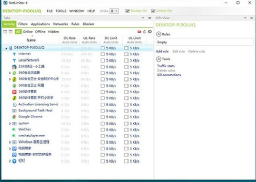 Netlimiter电脑版作为专业的网络流量管理工具,可实时监测各应用程序的网络活动状态。通过直观的界面展示每个进程的下载与上传速率,帮助用户清晰掌握带宽分配情况。软件内置智能限速功能,支持对特定程序进行网络速率管控,有效实现多任务环境下的带宽优化配置。