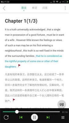 该软件提供多维度学习模式,其中智能睡眠模式可自动调节播放时长,配合护眼界面设计实现睡前学习场景覆盖。独创的即时查词系统支持点击定位查询,结合生词本管理功能形成完整的学习闭环。离线下载模块支持整专辑订阅,满足地铁通勤等无网络环境下的学习需求。