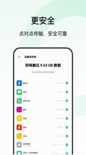 2、全数据类型迁移:涵盖通讯录、多媒体文件、系统设置等23类用户数据