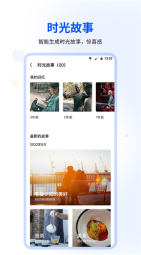 3、智能时光故事集:基于AI算法自动生成带背景音乐的照片影集,通过时间轴方式呈现成长轨迹与重要时刻,支持个性化编辑与分享