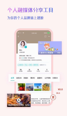 5、多维个人展示空间,集成动态发布、技能证书、服务案例及在线直播功能