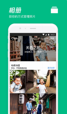 1、影像管理方案:自动分类手机相册并按时间轴排列,支持批量创建分享相册,旅行达人可通过时间地点维度快速整理拍摄素材