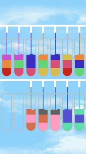 水排序拼图是一款风靡全球的益智类手游,采用清新明快的视觉设计搭配极简操作逻辑,游戏通过多层级色彩解谜机制激发玩家思维活力。玩家需在透明容器间转移有色液体,通过合理规划实现同色液体归集。每个关卡看似只需简单拖拽,实则暗含空间逻辑与策略预判,持续更新的500+关卡让挑战永不停歇。
