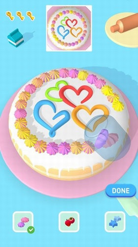 ·独创动态物理引擎,裱花过程真实模拟奶油挤出形态,手指滑动即可体验专业裱花师的创作快感
