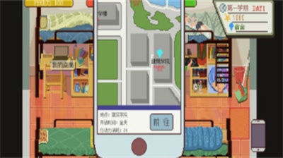 游戏设置多维角色培养体系,包含基础生存指标与核心能力数值。生理维度方面,需实时关注饥饿值、疲劳度与压力指数,通过合理规划作息保持最佳状态。能力培养方面,学习力决定课程表现,魅力值影响社交关系,运动力关联体能活动,玩家可通过选修课程、社团活动或特殊事件提升相关数值。