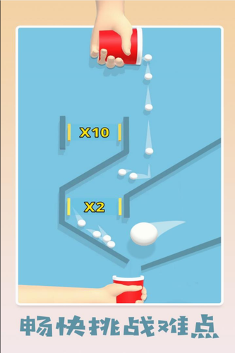 填满我的杯是一款风靡全网的休闲益智手游,采用明快的卡通美术风格打造视觉盛宴。游戏以物理轨道为核心玩法,玩家需要通过策略性摆放初始的三颗白球,借助轨道上的2倍、10倍增益机制,最终实现填满目标容器的挑战目标。