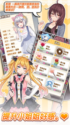 3、情感羁绊培养:设置天气系统与场景互动机制,不同环境下的互动将影响好感度成长曲线。超过50种约会场景配有专属剧情动画。