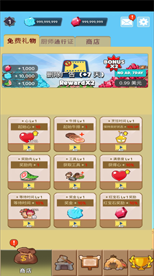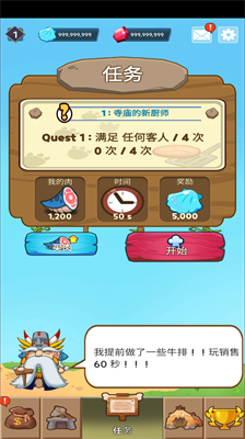 2、部落文明建设:通过收集食材兑换的部落货币,可升级燧石刀具、火山岩烤台等特色厨具,打造专属原始厨房