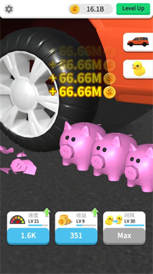 玩家通过点击虚拟按键精准控制轮胎移动轨迹,在避开障碍物的同时完成指定物品的粉碎任务。随着关卡推进,解锁的挑战目标包括特殊材质粉碎、连击积分等多样化成就系统。每轮挑战后获取的金币可兑换个性皮肤与特效道具,持续提升视觉冲击力。