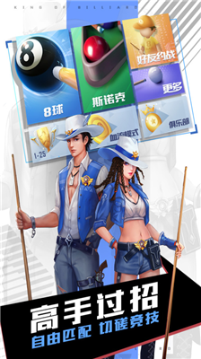 台球王者真实物理竞技对决是一款融合专业竞技与趣味体验的3D台球手游,其独创的物理模拟系统与细腻的画面表现,让玩家在移动端即可感受职业级球桌的精准操控。游戏采用动态力学演算技术,真实还原母球走位、库边反弹及球体摩擦效应,配合多角度镜头切换功能,为玩家打造身临其境的赛事氛围。涵盖8球对决、斯诺克大师赛等六大专业模式,特别设计的阶梯式闯关玩法与全球天梯排行机制,让休闲玩家与职业选手都能找到专属成长路径。