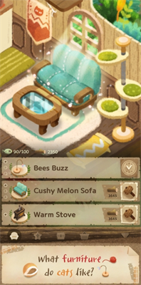「云端筑梦师」:家具DIY系统自由度很高,能组合出意想不到的设施效果,看着猫咪们在新家具上玩耍特别有满足感。