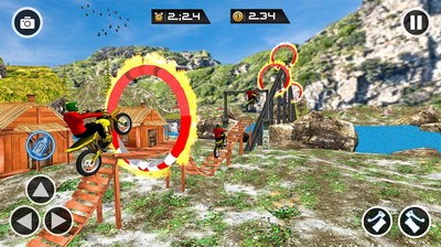 采用次世代渲染技术,轮胎碾压植被的物理反馈、扬尘粒子效果、车身金属光泽等细节均达到主机级水准。第一人称头盔视角与自由镜头模式的组合,让玩家既可感受贴地飞驰的紧张感,也能多角度欣赏特技动作的每个精彩瞬间。