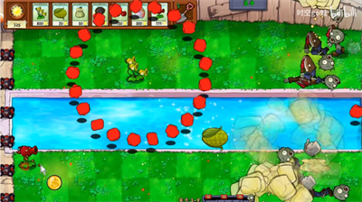 3、地形交互机制:泳池区域可部署莲叶平台,屋顶斜坡影响子弹轨迹,墓地地形会随机冒出僵尸