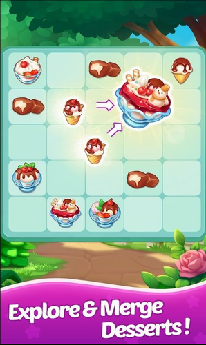 独特的场景解谜要素融入合成机制,玩家通过合并特殊甜品可解锁隐藏剧情片段。超过50种功能道具的组合运用,既能帮助突破关卡瓶颈,又能激发创造性思维。