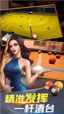 1、独创智能杆法系统,通过滑动触控可精准控制击球点与旋转力度,高杆走位时球杆与母球的碰撞反馈细腻真实