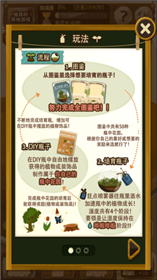 沉浸于微型生态世界的治愈系瓶中花园经营手记,以清新唯美的日式画风构建出独特的数字疗愈空间。数十种造型别致的玻璃容器错落排布,从北欧极简风格到东方禅意器皿,每件花瓶都经过艺术化处理。300余种植物图鉴涵盖真实花卉与奇幻物种,玩家可通过智能环境模拟系统观察含羞草的应激反应,见证食虫植物捕猎的震撼瞬间。