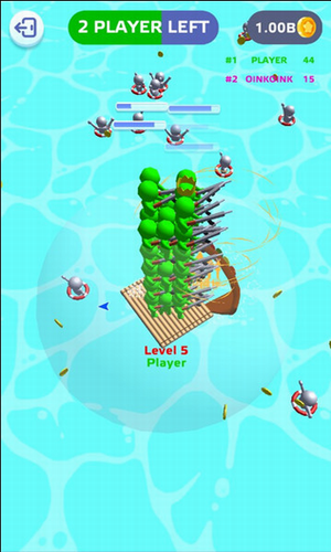 独创三阶攻防体系重构io游戏体验:初始阶段需快速收集漂浮木材扩展木筏底盘,中期通过精准抛掷武器击退红色敌军,后期解锁火焰弹、电磁网等特殊装备应对巨型章鱼BOSS。动态难度曲线设计确保每场20分钟对局都充满变数,系统将根据实时参战人数智能调整海流速度与物资刷新频率。