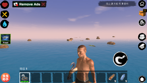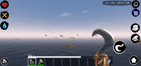 本作通过精密设计的生存系统,真实还原海上求生场景。水分、饥饿、生命值三维度监控生存状态,玩家需通过制造净水装置、种植作物、烹饪食物等操作维持基本生存需求。独特的漂浮物收集机制既包含手动钩取的操作乐趣,也设置了自动捕捞网等便捷功能,平衡了生存压力与探索乐趣。
