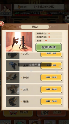 5、宗门经营模块支持弟子培养、武阁扩建、演武场特训