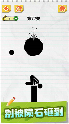 画线火柴人无限体力闯关是一款以火柴人为主角的创意解谜手游,采用极简黑白美术风格呈现独特视觉效果。游戏通过线条绘制与物理机制的巧妙结合,构建出充满挑战的益智世界。在关卡场景中,玩家需运用手指绘制不同形态的线条,为身处险境的火柴人搭建防护屏障或开辟逃生路径,随着关卡推进将解锁更具创意的机关设计与更复杂的场景结构。