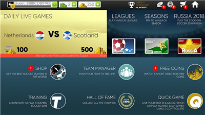 火柴人足球中文版全功能体验以极简线条构筑足球世界,标志性的火柴人造型贯穿全场。从奔跑的运动员到场边观众,鲜艳色块与动态光影交织出独特视觉韵律,让每场赛事都成为流动的艺术画卷。游戏采用双虚拟摇杆操作系统,左侧控制移动方向,右侧集成传球、抽射、滑铲等复合指令,通过不同按键组合可触发倒挂金钩、弧线射门等高阶技巧。