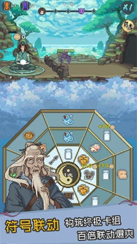 八卦修仙传国风修真正式上线本作将传统八卦文化与修真体系创新融合,打造出独特的像素风卡组策略游戏。游戏继承经典轮盘玩法精髓,200余种卦象符号与法器道具构筑出千变万化的组合策略。玩家通过操控太极八卦盘激活卦象联动,运用五行之炁降妖除魔,在有限轮转次数内完成试炼挑战。