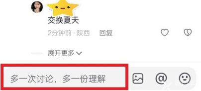 2、在评论区底部定位光标至文字输入框,此时可选择直接发表新评论或点击现有评论进行回复。两种方式均可作为触发入口。