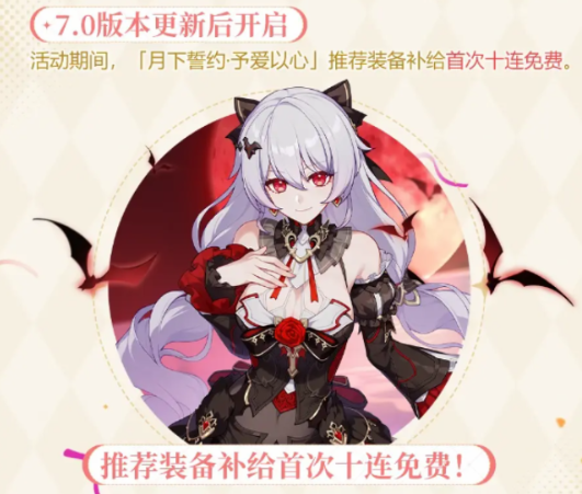 7.0版本更新后,所有玩家可通过「月下誓约-予爱以心」活动免费获取十连补给资格。该活动支持角色碎片保底机制,建议优先抽取新晋强度角色「时帆旅人」。
