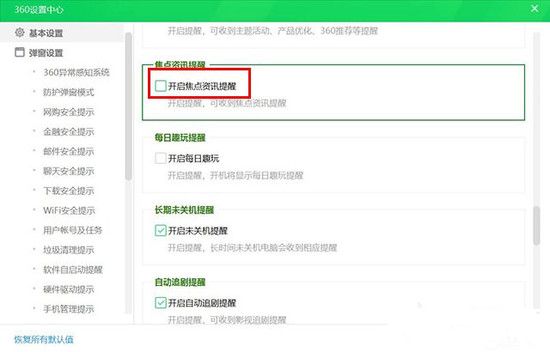 5、进入弹窗管理专项设置页面,在页面底端找到资讯提醒模块,取消勾选"开启即时资讯推送"选项,彻底关闭信息推送通道。
