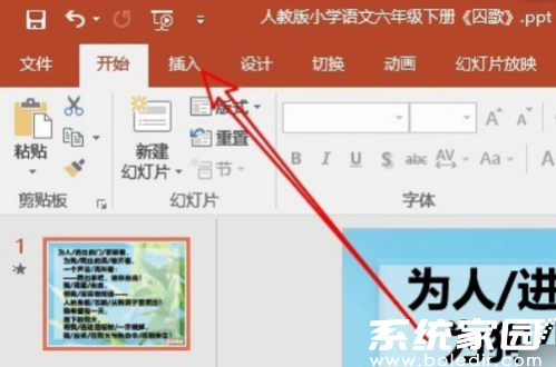 1、启动Microsoft PowerPoint 2016应用程序,开启目标演示文档。定位至功能导航区的「插入」选项卡,该模块集成了多媒体元素添加的核心功能。