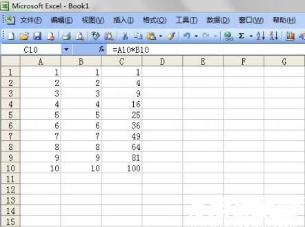 5、批量填充计算公式。将光标悬停在C1单元格右下角,当黑色十字填充柄出现时,按住鼠标左键向下拖动至C10单元格。此操作将自动为每一行数据建立对应的乘法关系式。