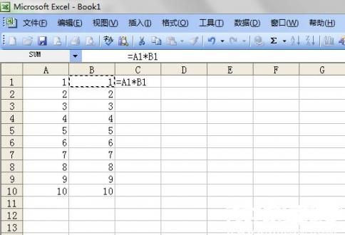 3、在选定单元格输入计算公式。假设需要计算C列总金额,可在C1单元格输入"=A1*B1"公式表达式。注意公式中的乘号使用星号(*)表示,单元格坐标需与实际数据位置严格对应。