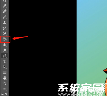 6、切换至油漆桶工具组时,建议使用快捷键G快速调取。工具属性栏中需确认当前操作模式为「前景填充」,同时勾选「消除锯齿」和「连续」选项以获得最佳填充效果。