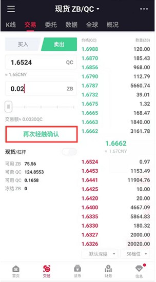 2、选定QC交易区(以ZB/QCT交易对为例),在卖出操作面板输入交易参数。需重点注意两个核心要素:在价格输入框填写期望的卖出单价,数量栏输入计划出售的数字资产总量。完成参数设置后点击"卖出ZB"按钮,系统将弹出二次确认窗口,核对信息无误后点击确认提交委托订单。