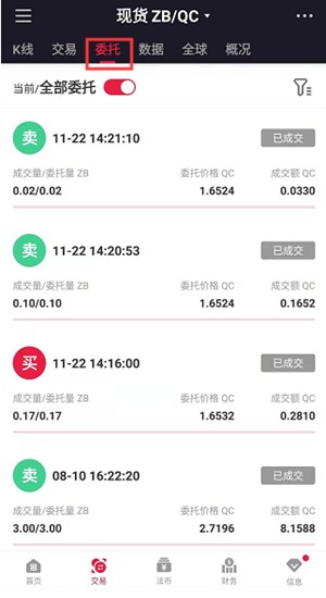 3、订单提交成功后,用户可通过"委托"功能模块实时追踪交易进展。该界面会完整展示当前挂单、历史成交明细以及订单状态变更记录。建议定期关注市场深度图与实时成交数据,当市场价格达到预设条件时系统将自动完成撮合成交。