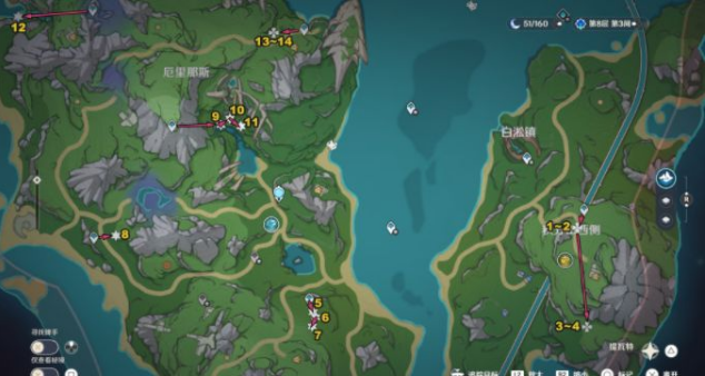 3、进阶采集技巧:利用「化城郭」七天神像作为传送锚点,向东南方向推进时可发现5处集中生长区。西北部水域周边分布着3个高密度采集点,建议搭配冰属性角色快速渡河。每日凌晨4点刷新机制下,合理规划采集时段能实现资源最大化利用。
