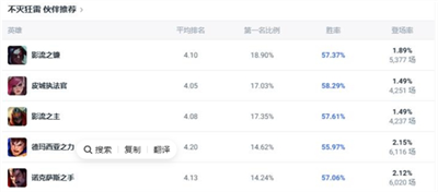 凯影的影袭切入可形成双前排压制,蔚的定点控制创造完美开团时机。劫的侧翼牵制分散敌方火力,盖伦的沉默领域限制法师输出。诺手的血怒斩杀可与狗熊形成收割链,建议根据团队定位选择最佳搭档。