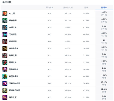 初始阶段优先选择守护者号角强化生存能力,配合水银鞋提升韧性对抗控制链。核心装优先合成心之钢叠加生命值,中期补足绿甲提升魔法抗性与治疗效果。无终恨意提供持续作战续航,反甲针对物理输出核心。后期可根据战场形势选择峡谷制造者增强法系输出,或神圣分离者强化普攻特效。