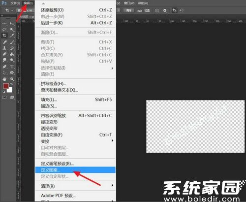 2、在顶部菜单栏依次选择【编辑】-【定义图案】功能模块,此时系统将弹出图案命名对话框,建议采用易识别的命名方式便于后续操作