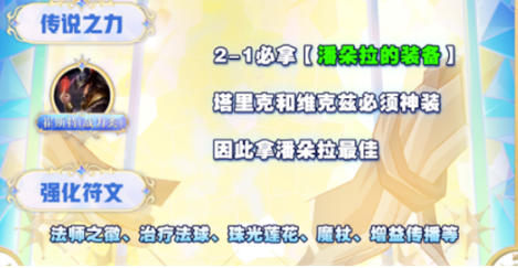 英雄之力优选崔斯特的潘朵拉装备,确保核心输出与主坦装备完美成型。强化符文方面重点锁定: