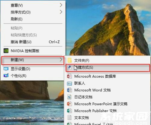 1. 在桌面空白区域单击鼠标右键,展开功能菜单后依次选择"新建"-"快捷方式"选项