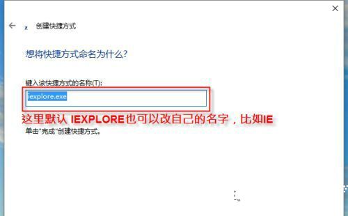 3. 在命名环节建议输入"Internet Explorer"或"IE浏览器"等易识别名称,系统默认的iexplore名称可能造成理解障碍。确认后点击"完成"按钮
