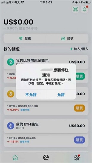4、完成钱包创建后,开启消息通知权限以便及时接收交易动态,此时已具备基础交易权限。