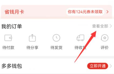 2、在用户信息面板中找到「我的订单」模块,点击右侧「查看全部」功能按钮