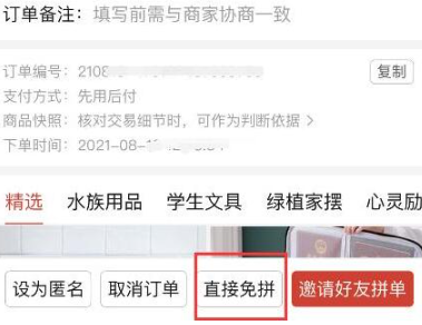 3、进入订单列表后,定位到需要操作的订单条目,注意观察该订单是否显示「直接免拼」选项