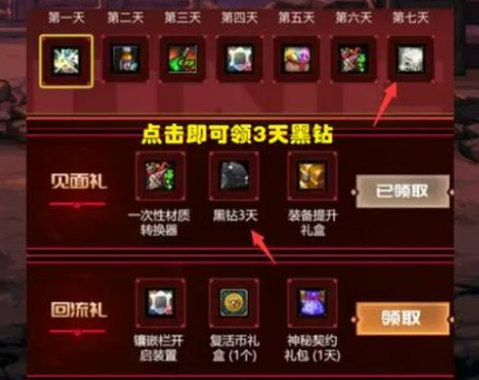 参赛通道分布于游戏客户端、心悦俱乐部及官方助手三大平台,通过"2023DNF格斗大赛"专题页即可进入。页面内设7日签到系统,每日奖励包含王者契约、疲劳药剂等实用道具,最终日可获取灿烂徽章。页面底部设有全民福利区,所有玩家均可领取3日黑钻与装备提升礼盒,回归玩家另有专属回流礼包,心悦会员还可解锁额外特典奖励。