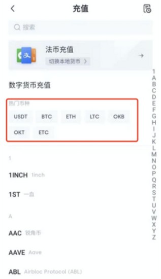 2、在币种选择界面,系统默认展示主流数字资产列表。若需充值非热门币种,可通过顶部搜索栏精准定位目标币种。需特别注意,不同区块链网络支持的代币类型存在差异,建议提前确认钱包兼容性。