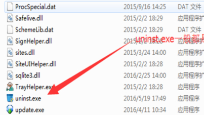 4、在程序根目录内滑动至底部区域,查找uninst.exe卸载执行程序。建议同时查看文件修改时间,确保选择最新版本卸载程序进行启动