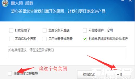 5、启动卸载向导后面临功能模块选择,重点取消温度监控组件的保留选项。该模块常驻系统托盘区,若未彻底清除会导致后台进程持续运行