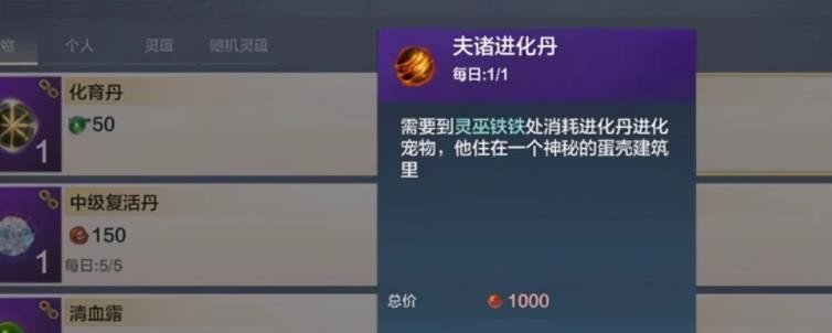 通过游戏内商城使用1000勾玉直接购买成品进化丹,此方式适合急需道具且资源充足的玩家。需注意每日限购规则,建议提前规划勾玉储备。